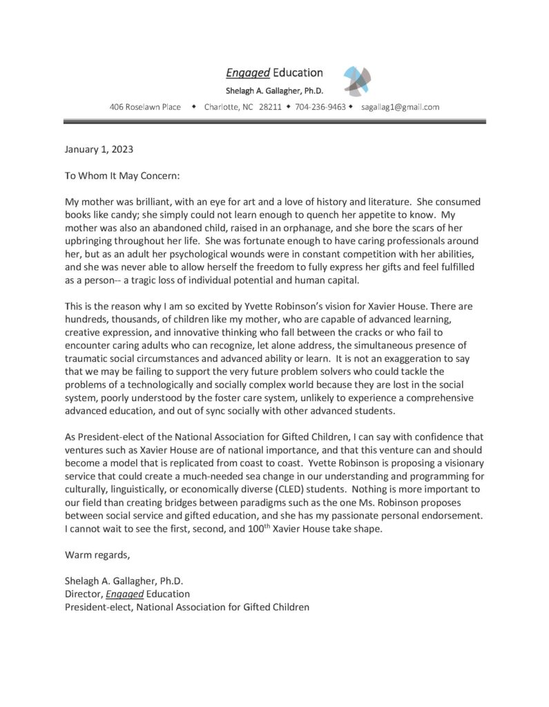 View Letter of Support from Shelagh A. Gallagher, Ph.D. Director